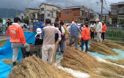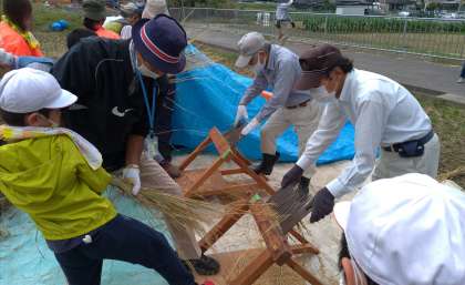 お米のつぶを「せんばこき」や「だっこくき」をつかっていねからとるところをたいけんしました。