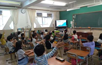 また,百々小学校にかかわる「いくつかな"How many?"クイズ」をして楽しんでいました。
