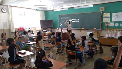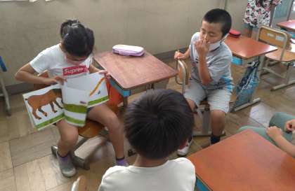 2年生はえい語の学しゅうで,絵本を読んでいます。