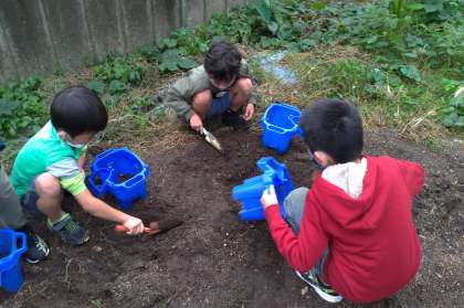 一人一人,うえきばちに「こかぶ」のたねをまきました。