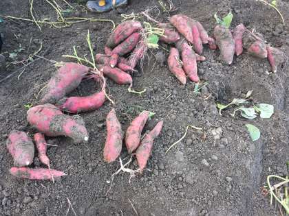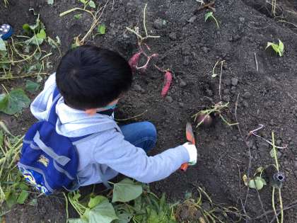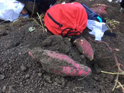 ふだん体験できない活動に子どもたちも楽しそうに取り組んでいました。予想を超えるさつまいもの大きさに,掘り上げた瞬間,歓声が上がっていました。