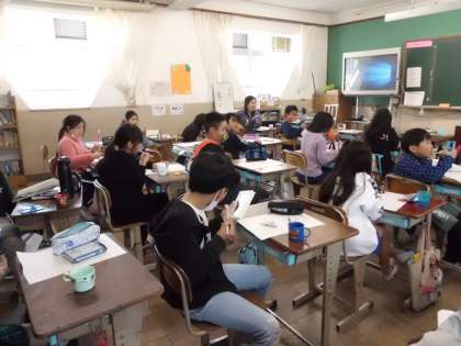 今日はプラークチェックをしました。給食終了後,歯磨きをし,自分たちの歯磨きでしっかり歯を磨けているのか確認しました。4年生くらいから歯肉炎になる人が増えてくるそうです。歯磨きが正しくできているのかご家庭でも見ていただけたらと思います。