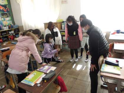 休み時間の子どもたちの様子・・・寒さなんて関係ないようで,外では元気いっぱいに増え鬼をしていました。教室ではジャンケンをして負けた人が足を開いていく遊びをしていました。平和な休み時間でみんな楽しく過ごしていました。