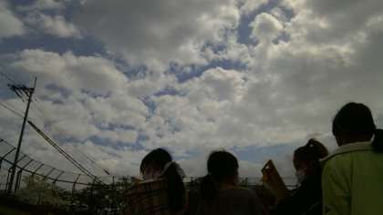 空を見上げるとすぐに「雲が動いている!」「あっちは黒いから雨雲かな?」という声が飛びだしました。