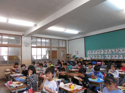 3年生になって給食の量が少し増えました。話はしないで黙食ですが,食べることを楽しんで欲しいと思います。