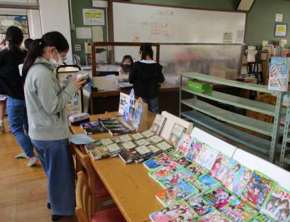 図書室に本を探しにいきました。素敵な本が見つかるといいですね。