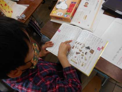 今日は国語辞典を使って学習をしました。見出し語を見つけるのに四苦八苦している子が多くいました。見つけた時の『あった!!』が最高にかわいかったです。