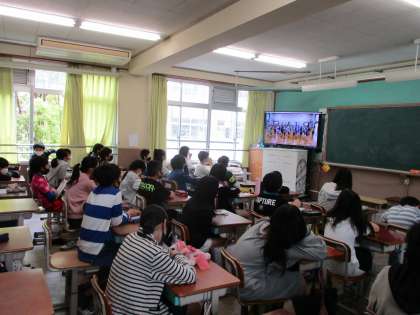 密を避けるため,教室からオンラインで各学年のお祝い動画を視聴しました。