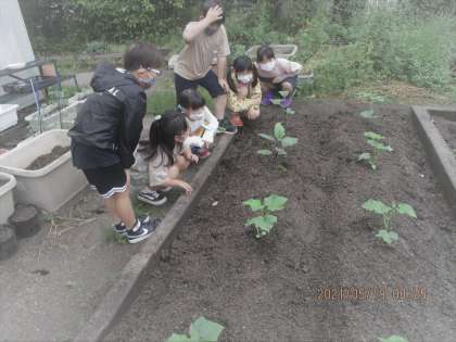 昨日,植えた野菜の様子が気になったので,見に行きました。