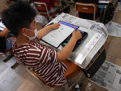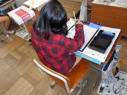 墨汁の量や力の入れ加減を工夫して,様々な線や文字を書きました。