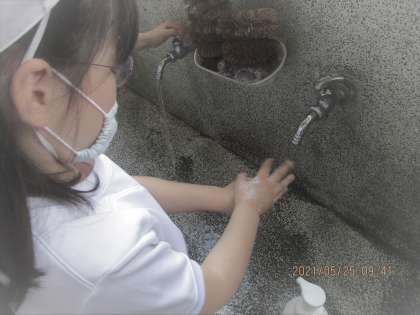 体育のあとは,手洗いうがい,アルコール消毒です。