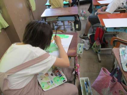 6年生は図工の「わたしの大切な風景」という学習で,絵の完成に向けて一生懸命取り組んでいるところです。