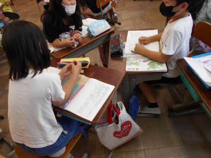 国語科の学習で友だちの話を聞いて質問を考えてしました。友だちの思いや考えにふれることができました。