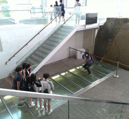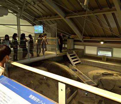 中では、地震の際に隆起した断層がそのまま140m保存されていました。地震でどのように地面が動くのかを再現した模型などもあり、みんな驚いていました。