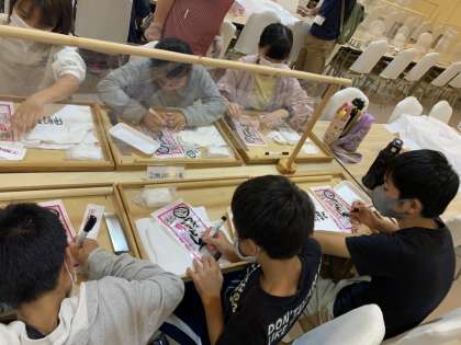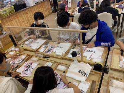 おみやげ用のふくろに名前を書いて・・