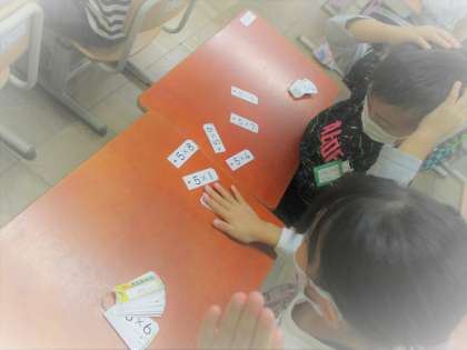九九カードを机に並べて,カルタのように取る