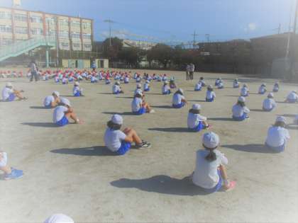 1年生と運動会の合同練習をしました。