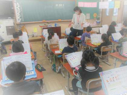 音楽の授業では,鍵盤ハーモニカもふいています。