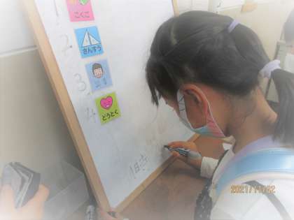 日直さんや気が付いた人が,次の日の学習予定を書いてくれます。