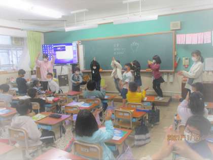 舞台の上に上がって,発表するグループ以外の人たちは,