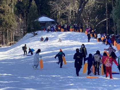 楽しそうな歓声を上げながら子どもたちが滑り降りて来ます。天気も良いので寒すぎる事もなく、最高のコンディションです。