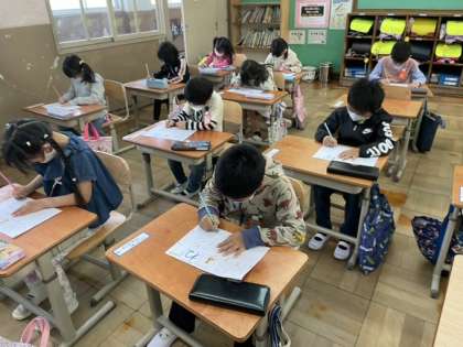 姿勢に気を付けて,一文字一文字丁寧に書いています。