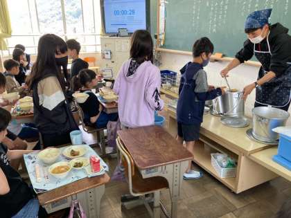 「ワイワイ会話しながら」というわけにはいきませんが、楽しい給食時間になっています。