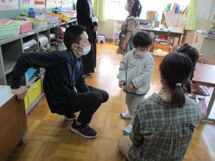 自分の名前や好きなものを百々小の先生たちに紹介しました。「好きなものは何ですか?」と質問する児童もおり,好きなものが一緒だと「私も好きです!」と好きなものに関する話が盛り上がっていました。