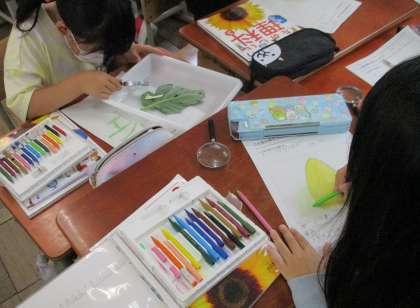 理科の学習でモンシロチョウの卵を観察しました。虫めがねを使って卵の色や大きさや形を観察し,カードに書きました。子どもたちは,卵の小ささに驚き,「こんな小さな卵がチョウになるなんてすごいなあ。」と感想を言っていました。