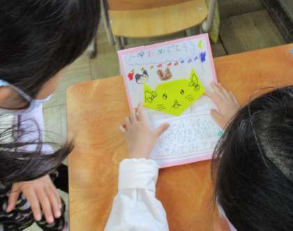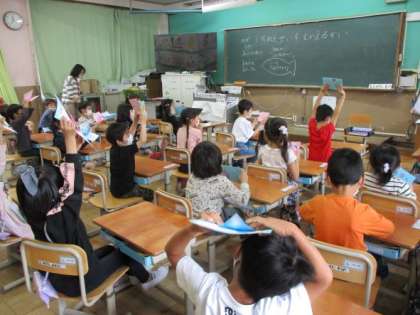 「1年生を迎える会」を終えて教室に戻った子どもたちは,ほっとしたような様子で「緊張した。」「楽しかった。」と思いを口にしていました。会の中でお兄さんお姉さんたちからもらったカードを一人ひとり手にして,とっても嬉しそうでした。