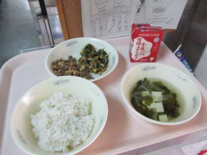 今日の献立 麦ごはん 牛乳