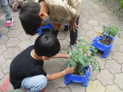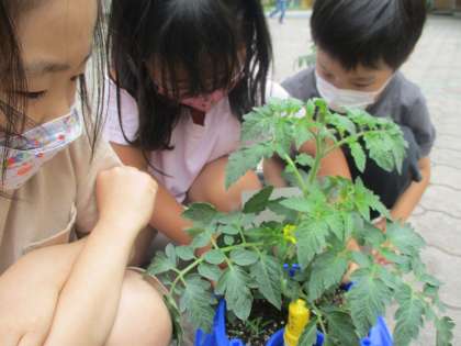 生活科の学習で,トマトの様子を観察しました。