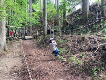 山の斜面を利用したアップダウンのあるアスレチックコースで思い切り体を動かしています。