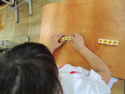 算数「いくつといくつ」では,数の合成分解について理解を深めます。10までのある数がいくつといくつに分けられるのかについて,ブロックで操作したり,「7は1と6」「7は2と5」…と何度も唱えたり,ゲームを楽しんだりして少しずつ身に着けていきます。