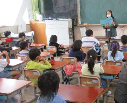 今年度初めての読み聞かせでした。どちらのクラスもお話の世界に引き込まれていました。
