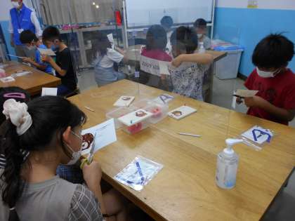 実際にモノづくり体験を行いました。細かい作業でしたが,集中して取り組み『叩くと光るたぬき』が完成しました!