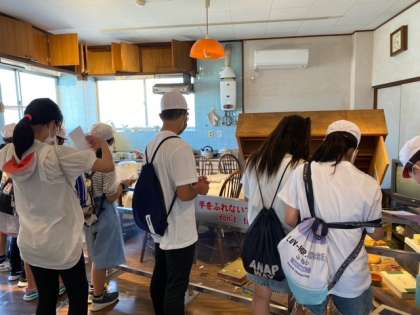 震災記念館にあるメモリアルハウスでは地震後の台所などが再現されています。当時の地震の被害がよくわかります。見学しながらメモをして学びを深めています。