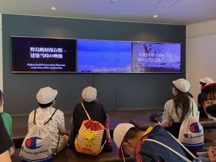震災体験では、揺れの大きさに驚いた様子でした。学んだことをたくさん話してくれました。震災記念公園を出発し、あすたむらんど徳島に向かいます。