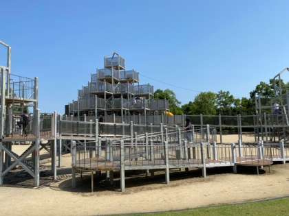 吉野川めぐりとともに、遊具で思いっきり体を動かして楽しんでいます!暑さに負けず、元気です!!