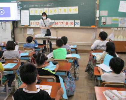 外国語活動の時間に,1から20までの数を英語で言ったり,クイズの答えたりしました。