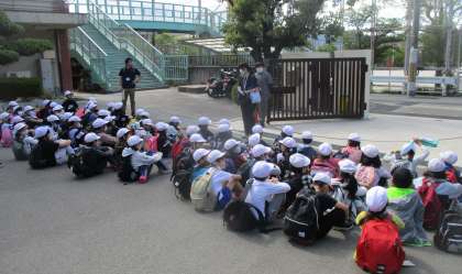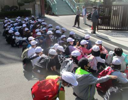 天気にも恵まれ,63人全員そろってこれから校外学習に出発します。