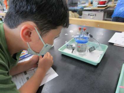 化学グループでは,液体Xが何なのか,どのような性質をもつものなのかを調べました。加熱したり冷やしたり,水と比べながら考えを深める姿が見られました。