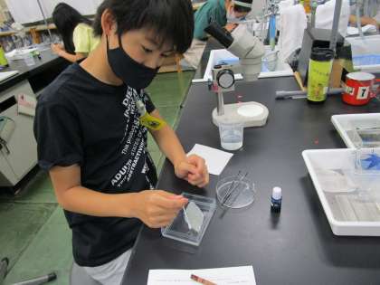 生物グループは,お茶の葉について調べました。どのようなつくりをしているのかを顕微鏡で調べ,葉にどのような働きがあるのかまで考えを深めることができました。さすが6年生!顕微鏡の使い方もばっちりでした!
