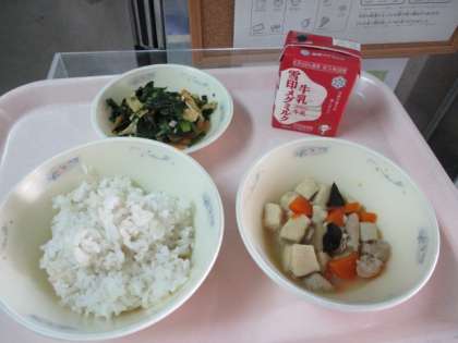 今日の給食 麦ごはん 牛乳
