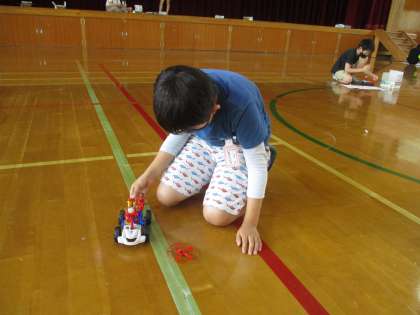 単元の最後なのでモーターカーを作って走らせました。とても速いモーターカーに子どもたちは大興奮でした!