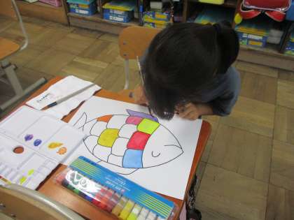 図画工作科の学習で,初めて絵の具を使いました。