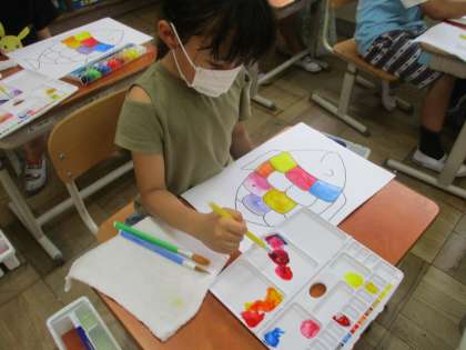 6月23日(木) 2年生 絵の具をつかって…