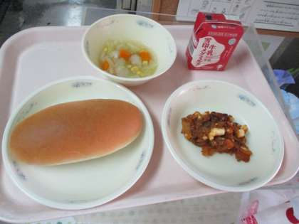 今日の献立 あじつけコッペパン 牛乳