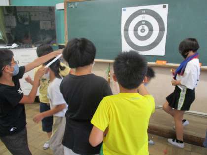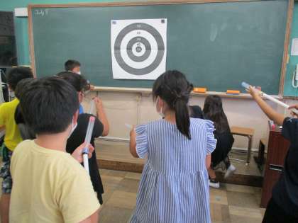 空気鉄砲を作ってチーム対抗で的あてゲームをしました。子どもたちは大盛り上がりでした!
