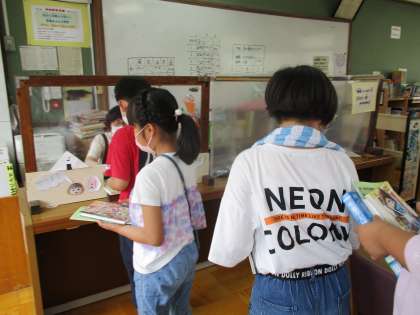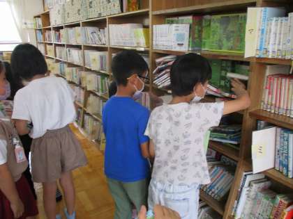 本を借りに行きました。新しく入ってきたものもあってとても楽しそうに選んでいました!
